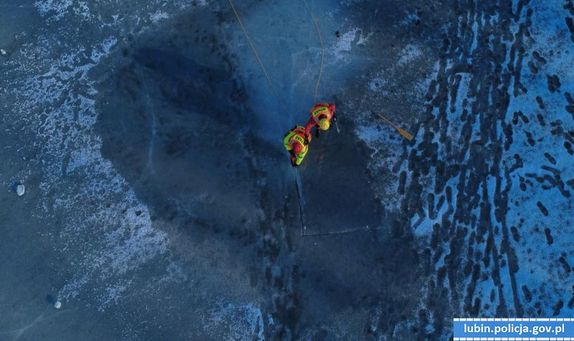Wczoraj lubińscy policjanci, wspólnie ze strażakami, ćwiczyli na zamarzniętym zbiorniku wodnym. Wspólne działania były okazją do doskonalenia umiejętności koordynacji działań ratunkowych, a przede wszystkim w udzielaniu pomocy osobom, które wpadły do wody na skutek załamania się lodu. Wszystko po to, by jeszcze skuteczniej współdziałać w realnych sytuacjach. Apelujemy o rozsądek! Wchodzenie na zamarznięte zbiorniki wodne jest skrajnie niebezpieczne – nawet jeśli lód wydaje się gruby i stabilny. Niska temperatura wody, szok termiczny i szybka utrata sił sprawiają, że samodzielne wydostanie się z przerębla bywa niemożliwa. Najbezpieczniejszym wyborem jest pozostanie na brzegu