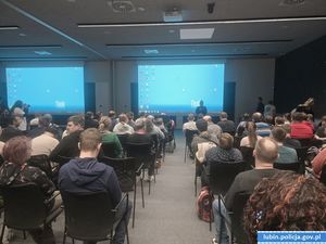 Spotkanie umilała policyjna maskotka – Komisarz Lew, a każdy uczestnik, dzięki organizatorom prelekcji, otrzymał odblaskową zawieszkę.