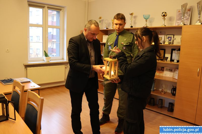 Betlejemskie Światełko Pokoju od wielu lat wyrusza w świat za pośrednictwem harcerzy i skautów. Wczoraj symbol ciepła, miłości, pokoju i nadziei dotarł do Komendy Powiatowej Policji w Lubinie. Z rąk harcerzy odebrał je Komendant Powiatowy Policji w Lubinie insp. Waldemar Cichocki. W tym roku przesłanie towarzyszące akcji, to hasło „Pielęgnuj dobro w sobie”, które przypomina o potrzebie wzajemnej życzliwości, empatii i odpowiedzialności za drugiego człowieka.