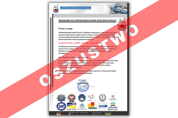Do policjantów CBŚP ponownie docierają informacje o aktywności oszustów, którzy za pomocą poczty elektronicznej rozsyłają masowo e-maile, podszywając się pod policjantów Centralnego Biura Śledczego Policji. Przestępcy informują o rzekomym „zajęciu komputera” przez służby, w związku z wykrytą m.in. pornografią dziecięcą. Straszą także, że osoba zostanie zarejestrowana jako przestępca seksualny i „sprawa będzie transmitowana przez kilka kanałów telewizyjnych”. JEST TO OSZUSTWO!