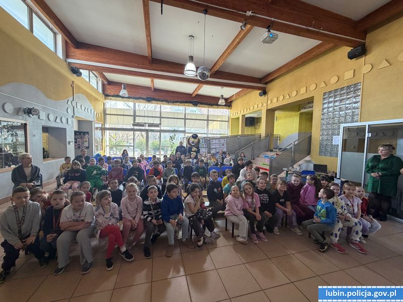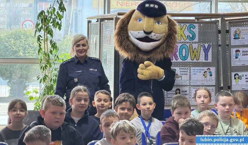 Z myślą o młodych mieszkańcach naszego powiatu, policjanci lubińskiej komendy odwiedzili uczniów Szkoły Podstawowej nr 1 w Lubinie. W ramach działań profilaktycznych, funkcjonariusze przypomnieli dzieciom podstawowe zasady bezpieczeństwa. Mundurowi przekazali informacje, jak należy reagować w sytuacjach zagrożenia i do kogo zwrócić się o pomoc. Głównym tematem spotkania było bezpieczeństwo w ruchu drogowym i nauka pierwszej pomocy. Atrakcją dla dzieci była maskotka Policji Komisarz Lew.