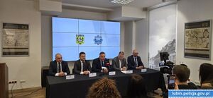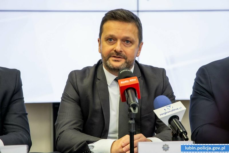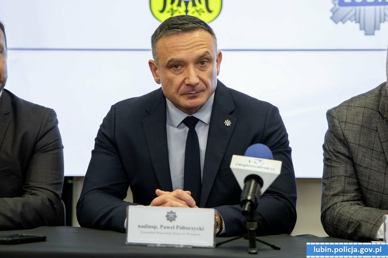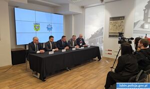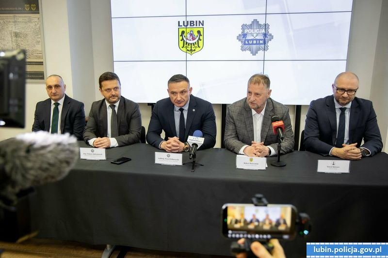 W konferencji prasowej udział wzięli: nadinsp. Paweł Półtorzycki, Komendant Wojewódzki Policji we Wrocławiu, Robert Raczyński Prezydent Lubina, Paweł Kleszcz Starosta Lubiński, insp. Tomasz Jędrzejowski Zastępca Komendanta Wojewódzkiego Policji we Wrocławiu, insp. Waldemar Cichocki Komendant Powiatowy Policji w Lubinie.