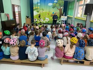 Maluszki z zaangażowaniem uczestniczyły w zajęciach, zadając mnóstwo ważnych i ciekawych pytań. Miłą niespodzianką było to, że każde dziecko przyniosło ze sobą kask ochrony, aby pokazać policjantce, jak bardzo poważnie traktują swoje bezpieczeństwo podczas jazdy na jednośladzie. Dodatkowo w ciekawy i przystępny sposób przekazana przez funkcjonariuszkę wiedza, z pewnością przyczyni się do kształtowania prawidłowych nawyków oraz zwiększenia świadomości najmłodszych uczestników ruchu drogowego.